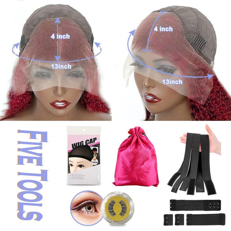 - 【13x4 Burgundy Curly Wig Lace Cap Size】:13x4 Inch Hd Transparent Swiss Lace, Breathable & Durable. Soft and Thin Swiss Lace Match Skin Well. Medium Cap ( 22.5 Inches) with 3 Combs and Adjustable Straps, Soft and Cmfortable, Can Match a Common Size Head Perfectly.
