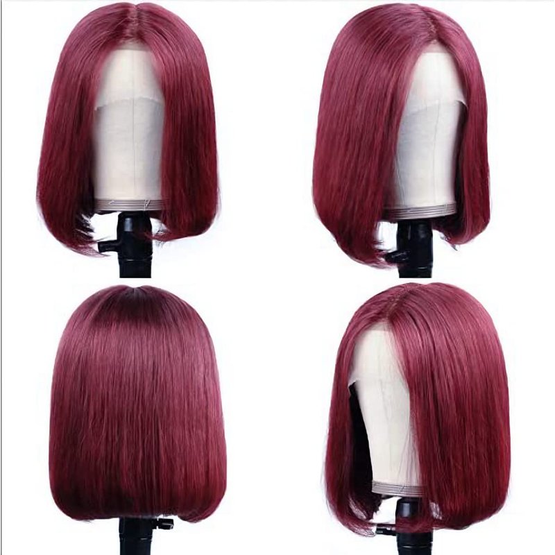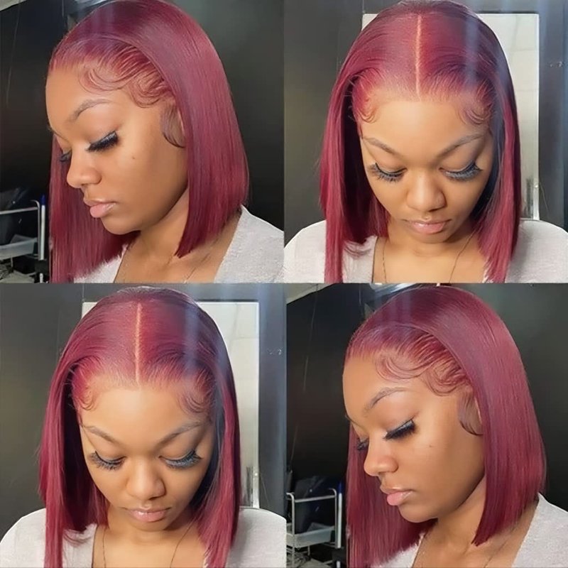 99j Burgundy Lace Front Wigs Human Hair Bob 13x4x1 Lace Front Wigs Human Hair Bob Wig Human Hair Pre PluckedRed Wine Short Straight Bob Wigs Dark Burgundy Bob Wig for Women 10inch