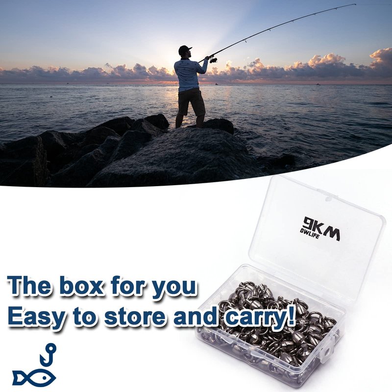 - [High-strength]Copper body, stainless steel bearing and welded ring constitute the 9KM DWLIFE professional ball bearing swivel fishing tackle. Strong tensile strength and impact resistance.It can help you change lures and lines quickly and won't miss any chance of successful fishing.