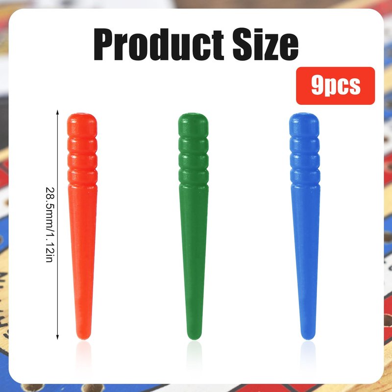 - Product Includes: You can receive 9 pieces of cribbage board pegs in 3 colors: blue, green, and red, 3 of each color, sufficient quantity to meet your game need and replacement.