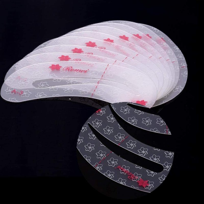 Plastic is soft, durable and reusable. Helping draw fashionable, symmetrical and natural eyebrows. Allowing easy and precise drawing. 9 different types can meet your different needs for brow shape. Portable size with light weight is convenient for the beauty on the go.