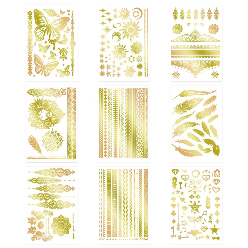 - Product Content: You will receive 9 pieces of gold temporary tattoos, measured about 21x14.8cm/8.3x5.8in, a variety of beautiful patterns for you to choose from, enough to meet your needs.
