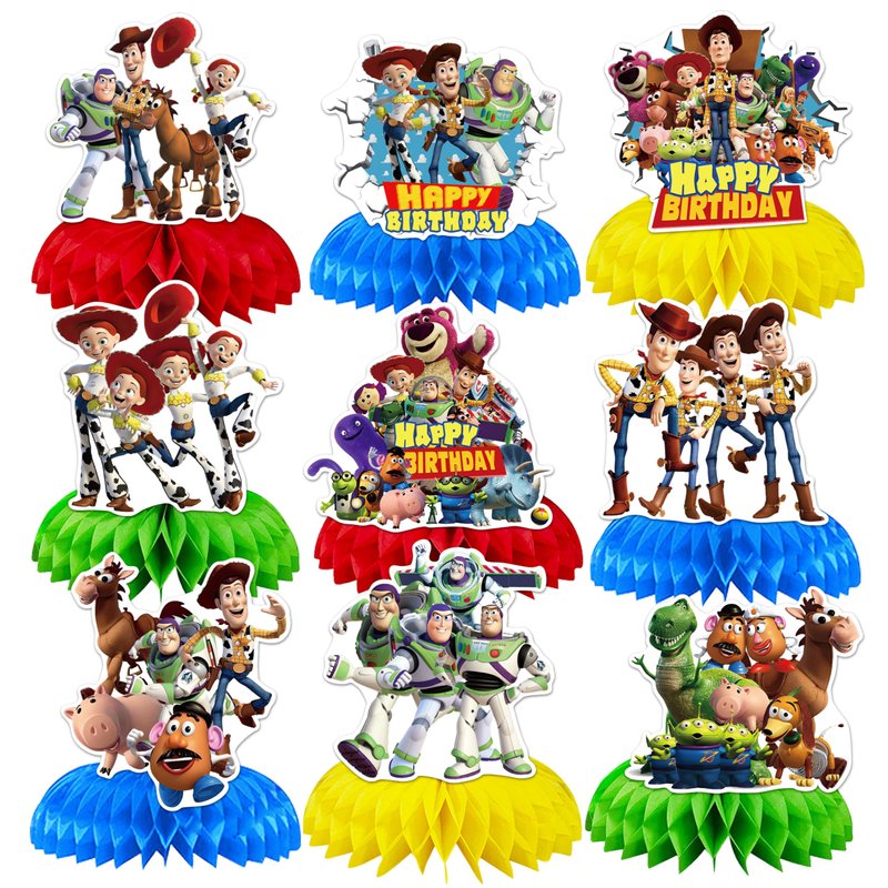 - What You Get :You will get 9 pcs big different kind of honeycomb centerpieces, Big size is 6x8 inch.These toy table decorations are so chic and funny that make your birthday party popular.