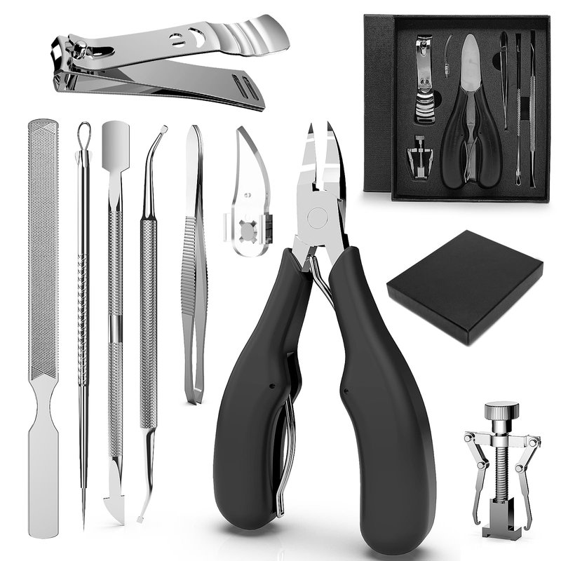 - 【Professional Pedicure Tools: 9-in-1 】TENBOK toenail trimmer set consists of 9 tools, including Ingrown Toenail Clipper, Nail File, Toenail Corrector, Nail Lifter, Cuticle Cutters, Nail Cover, Tweezers, Acne Needle. Meet your different nail trimmer needs, keeping your feet healthy without pain and nail fungus.