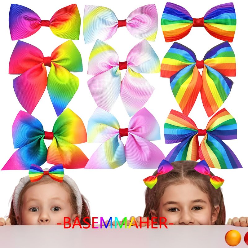 9 Pcs Rainbow Hair Bow Clip - Gay Pride Day Rainbow Colors Grosgrain Ribbon Hair Pins Muticolor Bow Hair Barrettes Holiday Hair Accessories for Girls Women Wedding Birthday Party Decorations