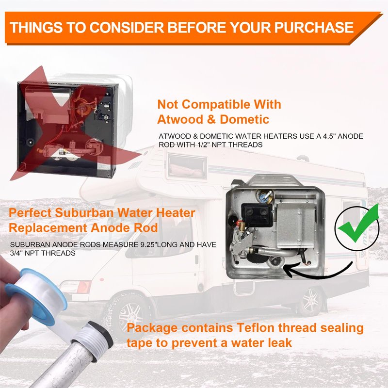 - 🚐【 Extends The Lifespan of Your Suburban Rv Water Heater】The rv anode rod water heater prevents rust and extends the life of your water heater, saving you money on replacements.