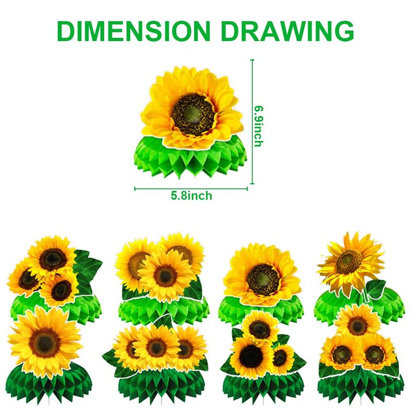 - Sunflower honeycomb centerpieces professionally printed on heavy-duty card-stock paper with unbeatable good-looking cartoon characterskit are prefect decoration for variety occasion, such as Inspired themed birthday party decorations,baby room decoration,fans party...