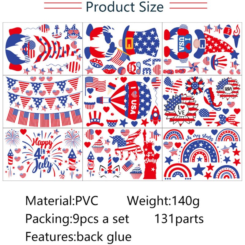 The package includes 9 sheets of independence Day wall sticker, printed with classic patriotic elements, proper size to meet your needs for decoration. Bring your room with a breath of beautiful and fun.
