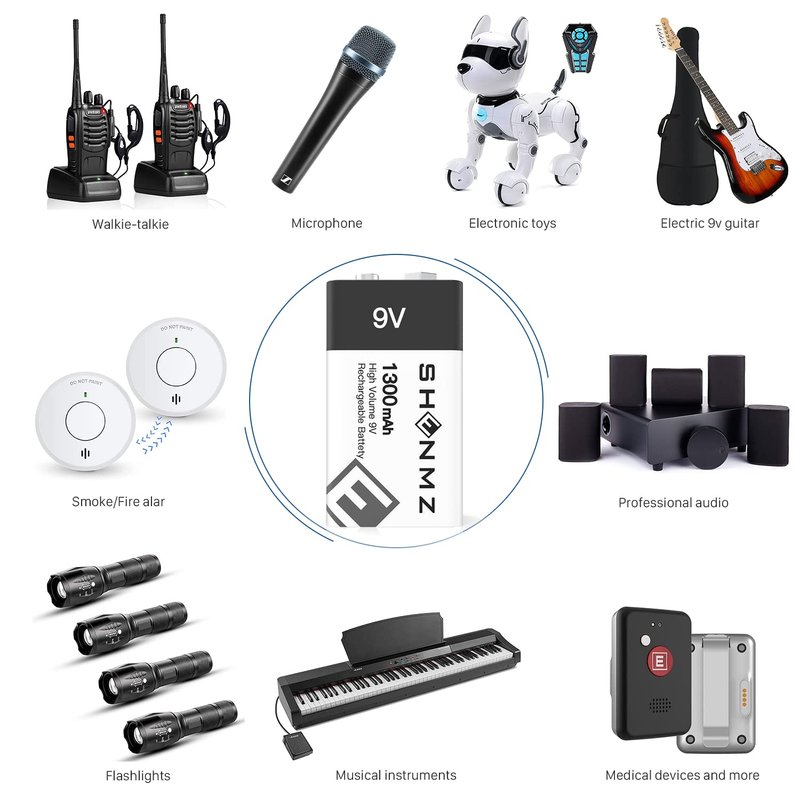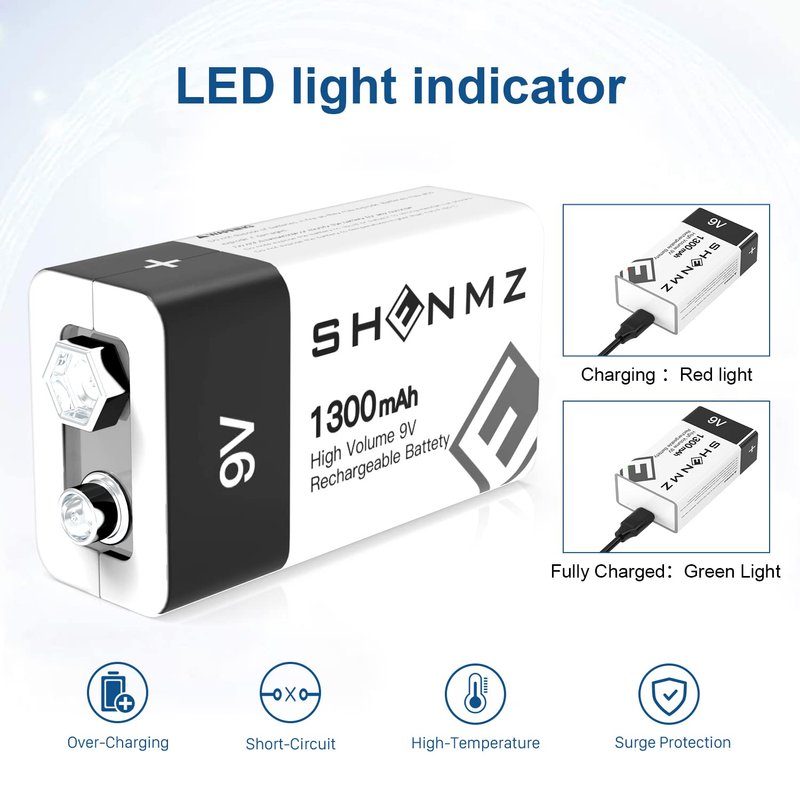- ✅【2000+ Cycles High Performance】 SHENMZ The 9V rechargeable battery has a capacity of up to 1300mAh and can be recharged more than 2000+ Cycles. Easy to operate, no memory effect, provide more power for your device.