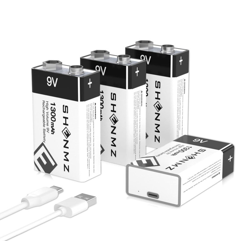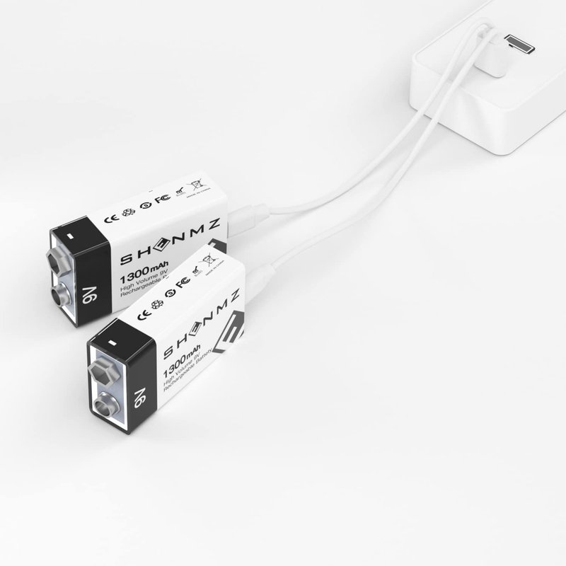 SHENMZ Rechargeable 9V Batteries, 9V Battery 9Volt 1300mAh Long Lasting All-Purpose with 2-in1 USB Charging Cable