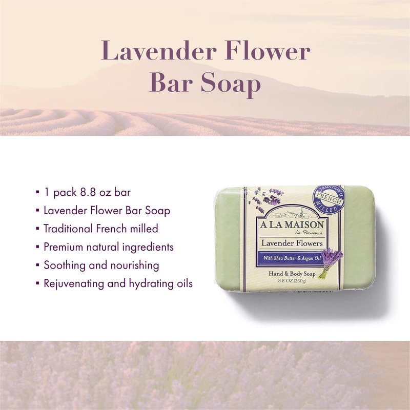 A LA MAISON Lavender Flower Bar Soap - Triple French Milled Natural Moisturizing Hand Soap Bar (1 Bar of Soap, 8.8 oz)