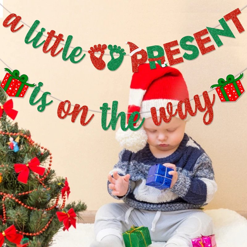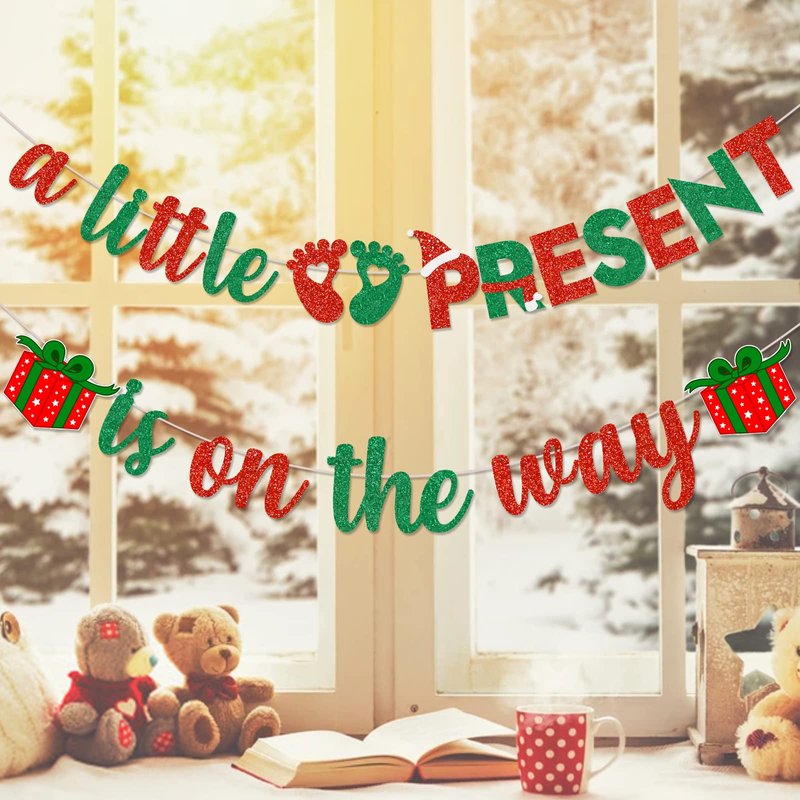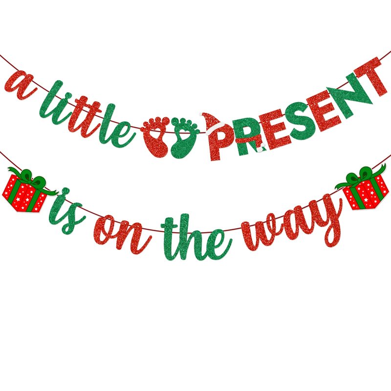 - 【Specially designed for Christmas BABY SHOWER party banner supplies】 The green and red shiny "a little present is on the way" banner, including the unique christmas present logo, christmas theme letter design, creates happy scene for the party and makes you more Close to the atmosphere of a christmas baby shower party. This is a great choice for christmas baby shower parties decoration banners.