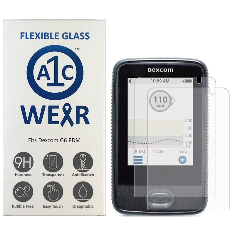 A1C WEAR - 9H Flexible Glass Screen Protector For Dexcom G6 Receiver PDM - Won't Crack or Chip - Anti-Scratch Anti-Fingerprint - 2 Pack
