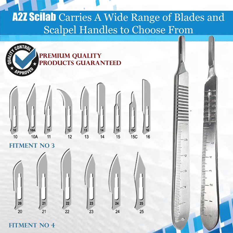 A2Z SCILAB 100 Sterile Carbon Steel Blades #10 with Free Scalpel Handle #3