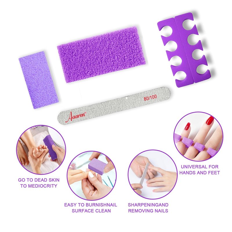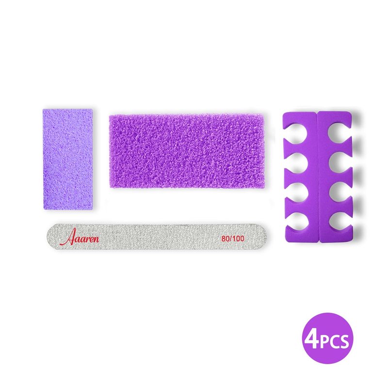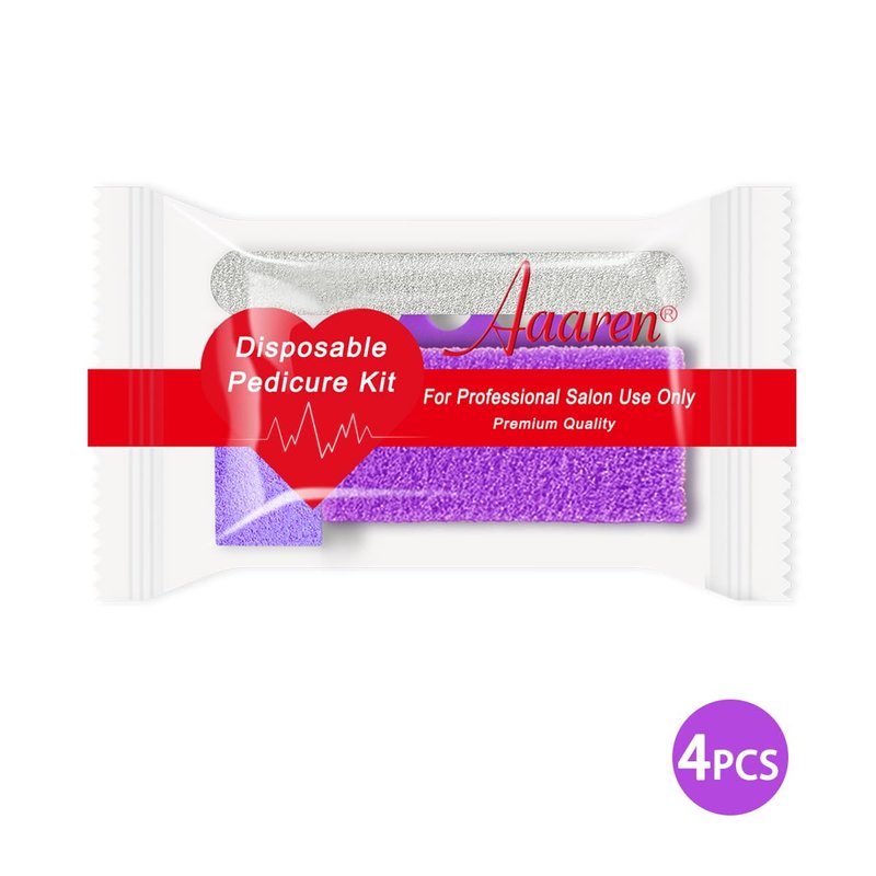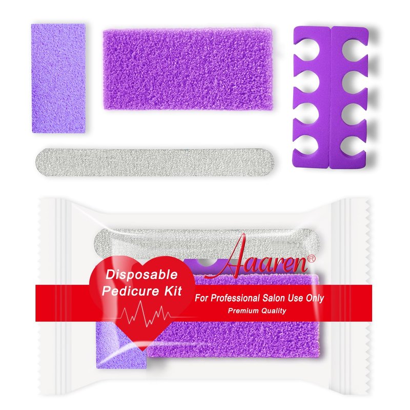 Aaaren 4-Piece Pedicure Kit, 25kits/boxes, Individually-Packed, Purple Pumice Pad, Zebra Wood Nail File 80/100 Grit, Purple Mini Buffer 80/100 Grit, Purple Toe Seperator