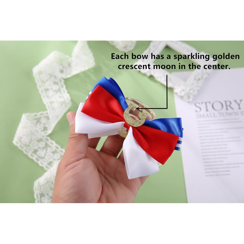 - Both two bows have a sparkling golden crescent moon in the center. Whether you are dressing up for a cosplay event or just want to add some cute flair to your everyday look, these bows are the perfect accessory.