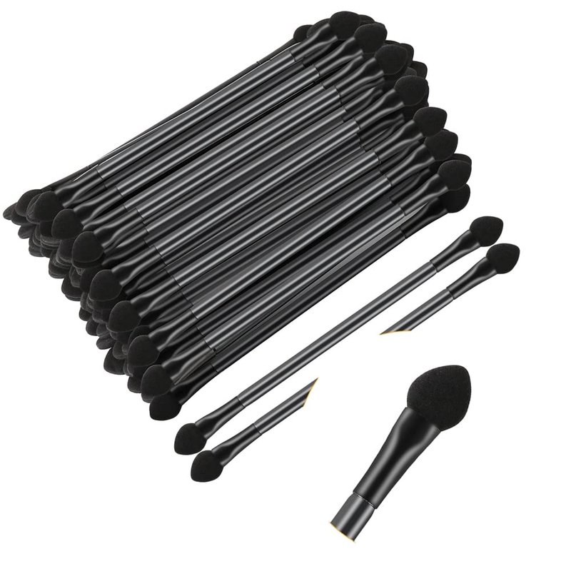 AaKode 30PCS Disposable Dual Sides Eye Shadow Sponge Brushes Makeup Applicator, Professional Double-End Eyeshadow Brushes Cosmetic Tool(12CM, Black)