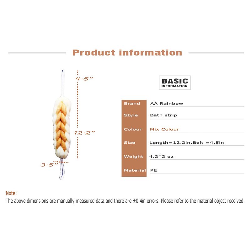 ✔️ENVIRONMENTAL PROTECTION: The Bath Shower Sponge is made of Eco Friendly and fully Recyclable Material, won’t harsh to the skin, give your skin a healthy natural glow ✔️USE FLEXIBLE: The mesh of bath sponge was soft and durable enough to used on the most delicate skin. would never scratch your skin. It also can effectively clean the skin and dirt. Perfect for cleaning the back, neck, shoulders, feet and hard to reach areas. the durable shower sponges that will not fall apart ✔️ BUBBLES ARE ABUNDANT: The soft and full bath sponges work up a great lather with any shower gel or soap to help you Gently Exfoliates Skin & Cleanses Skin Pores. Apply shower gel onto mesh, rub gently will create rich lather, let you enjoy the comfort of the shower ✔️CUTE DESIGNS : When not stretching, the length is 12", and after stretching, the length can reach 32". ✔️NOTE: If for any reason you are not satisfied with your purchase, please contact us because our goal is customer satisfaction and we are committed to making it right for you.