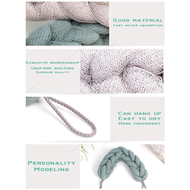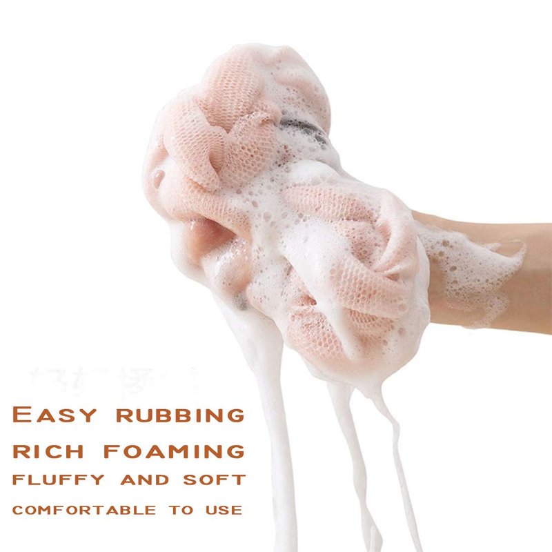 - ✔️USE FLEXIBLE: The mesh of bath sponge was soft and durable enough to used on the most delicate skin. would never scratch your skin. It also can effectively clean the skin and dirt. Perfect for cleaning the back, neck, shoulders, feet and hard to reach areas. the durable shower sponges that will not fall apart