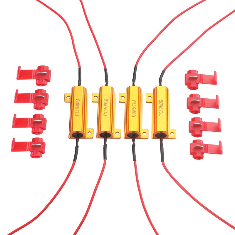 Package Include: 4Pcs (2 Pairs) 50W 6 ohm Load resistors with 8Pcs T-Taps. Mouting screw not included. Please do your research before purchase about what kind of load resistors you need for your car: 3ohm, 6ohm or 9ohm. Those are 50W 6ohm resistors.