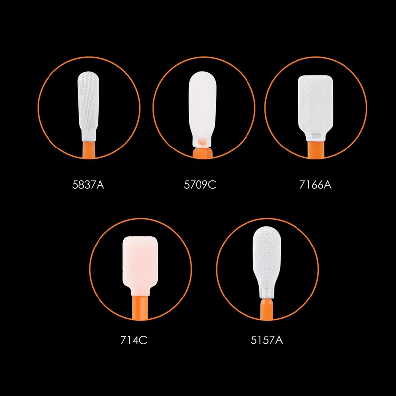 - 【High-Quality Kit】This set includes 5 different types of precision cleaning swabs, crafted from double-knit polyester tips (A5837A, A7166A, A5157A) or foam (C5709C, C714C), all securely attached to polypropylene shafts. Ideal for removing dirt and debris from hard-to-reach surfaces, these swabs boast excellent particle capture and retention properties.