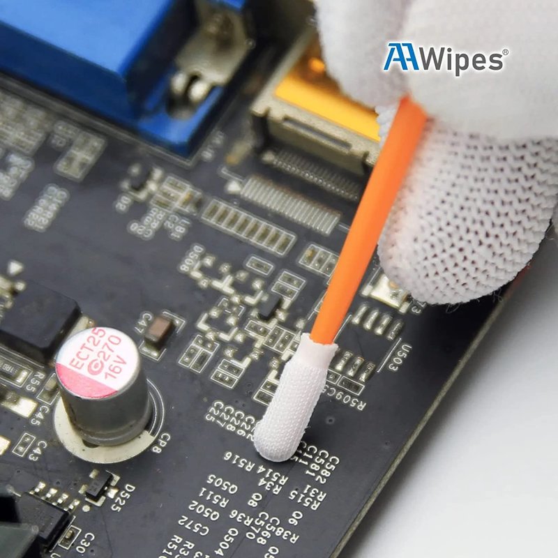 AAwipes specializes in professional sanitary supplies and critical cleaning products, such as lint-free cleanroom wipes, cleanroom swabs, sticky mats, and more. Our precision cleaning swabs are high-quality, made without adhesive and manufactured through automated processes to ensure a complete thermal bond. Our collection of swabs includes microfiber and foam options, each designed for different applications. Lint-Free Microfiber Swabs are made of knitted polyester fiber and are resistant to most solvents, including acetone, and have superior scrubbing ability for removing grease and residue. Foam Swabs are constructed from compressed open cell polyurethane foam and are securely bonded to a polystyrene shaft. They are highly absorbent and perfect for cleaning keyboards, phones, electronics, printer heads, and tight-to-reach places.