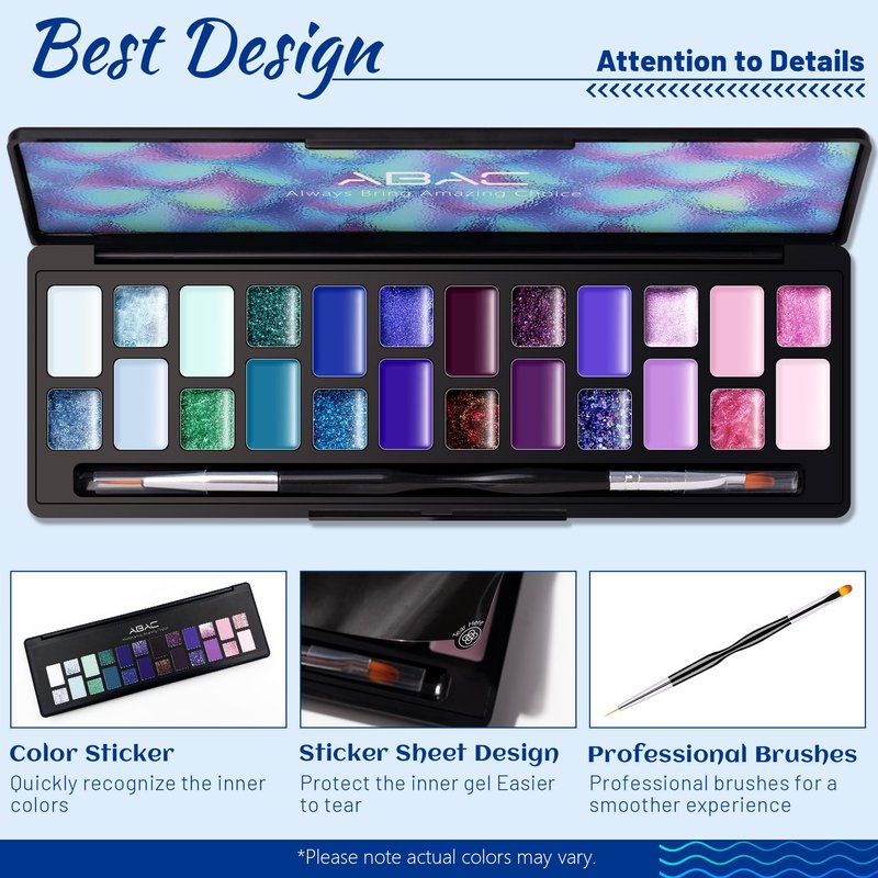 ABAC Pearl Gel Nail Polish Set-24 Colors Turquoise Blue Glitter Solid Gel Polish Pink Purple Mermaid,Upgraded Crème Pudding Gel Manicure Palette with Pro Brush Soak Off LED Gift for Women