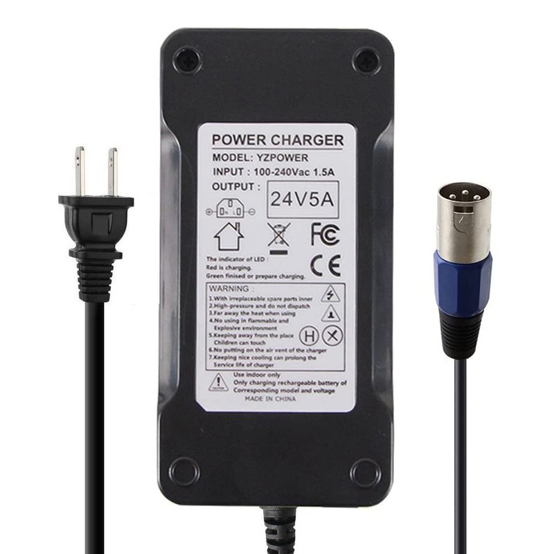 Abakoo 24V 5A Battery Charger Power Supply for Jazzy 1107,1121, 1121 HD, 614, 614 HD Smart Automatic with 3-Pin XLR Connector
