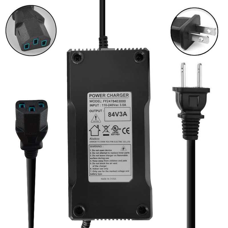 Abakoo 84V 3A Battery Charger for 20S 72V Lithium Li-ion Battery Pack with 3 Holes Plug