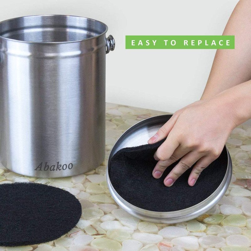 - Easy to replace:Just shoved the replacement filters into the compost bin lid, the filters begin to work, If you have one of the smaller containers, the filter can easily be cut to size.