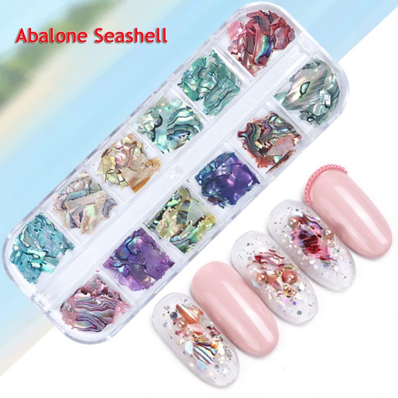 - 【Quantity】12 Grids colorful ultra thin irregular abalone seashell slices nail art sequins. Holographic 12 colors ocean shell nail art design, different fashionable seashell studs pattern allowing you to have a shiny and attractive nail tips.