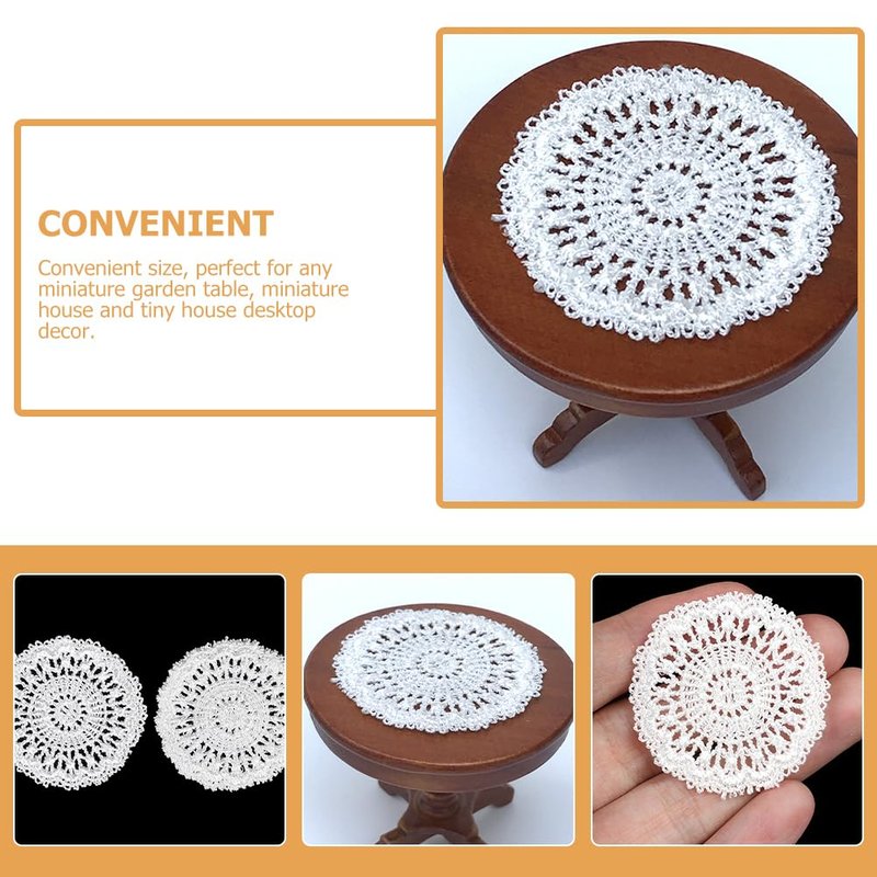-Mini gardening miniature table lace mat, suitable for small decorative tiny house supplies mini furniture.