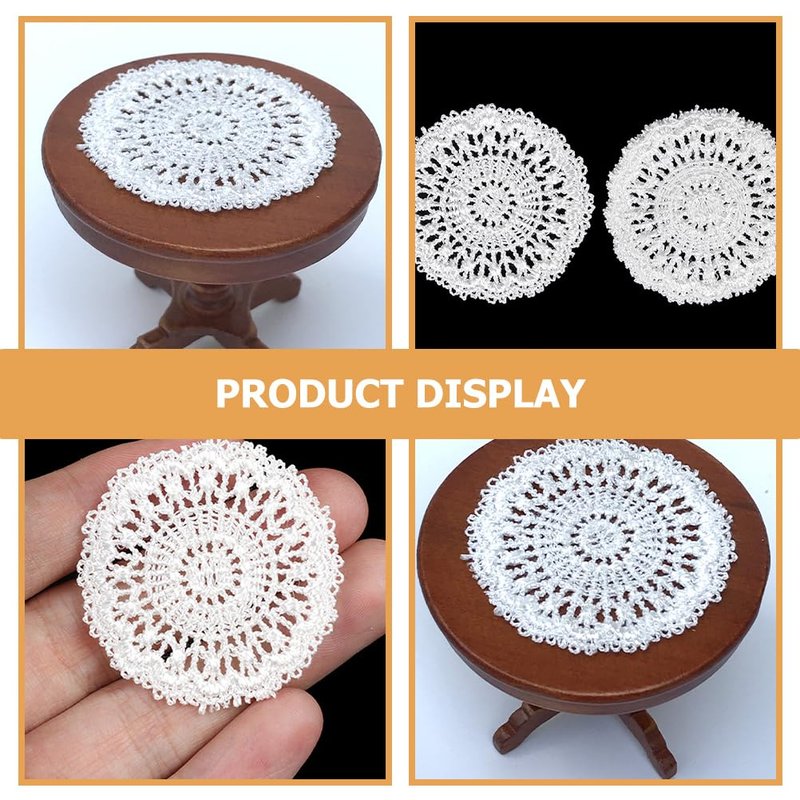 Abaodam 6pcs Dollhouse Table Mat Mini Doilies Mini House Dining Table Cover Miniature Table Mat Placemats Lace Trim Mini Accessories for Dolls Tiny Things Cloth Furniture Ob11 Crafts White