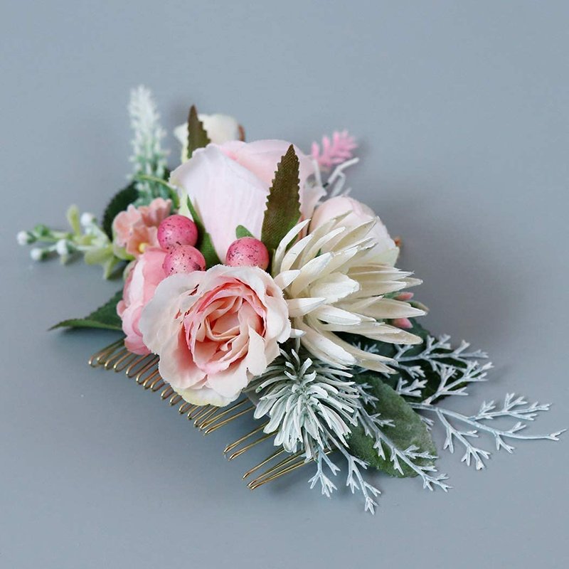Abbie Home Flower Hair Comb - Floral Boho Comb with Rose Berry Handmade Bridal Crown Wedding Floral Headpiece (Blush Pink)