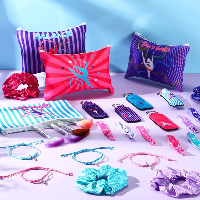- Abundant Gymnastics Gifts: the gymnastics gift includes 12 pieces of dance makeup bag, 12 bulk scrunchies, 12 dance hair ties, 12 gymnastics bracelet, 12 ballet keychain, sufficient for your daily usages and sharing with others