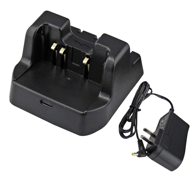 - 120v AC Desktop Drop-In Rapid Charger For HandHeld transceiver Radios.