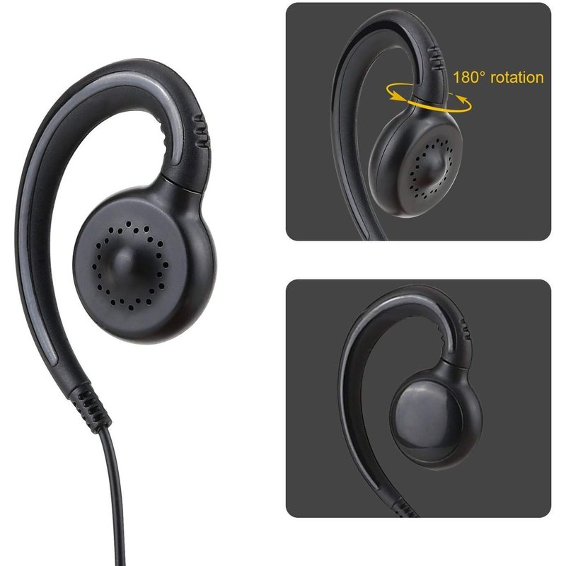 The abcGoodefg swivel style earpiece is commonly preferred by many retail and restaurant businesses. Its' single wire is neither too thick or thin allow users to move comfortably and fix any restriction in movements. The on-ear pad big speaker would eliminate listening fatigue with sound projection from outer ear providing long hours of working comfort. The neutral swivel arm rotation to go along with users’ head turn and also be able to mount on the left/right ear.