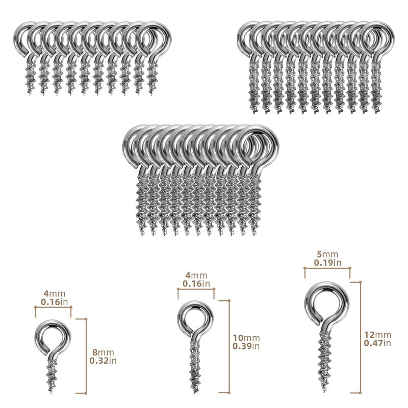Abeillo 300 Pieces Small Screw Eye Pins 3 Sizes Screw Threaded Eye Pin Hooks Mini Stainless Steel Eyelet Screws Hooks for Jewelry Making DIY Art Craft (0.16 x 0.3 0.16 x 0.4 0.2 x 0.47) Inch