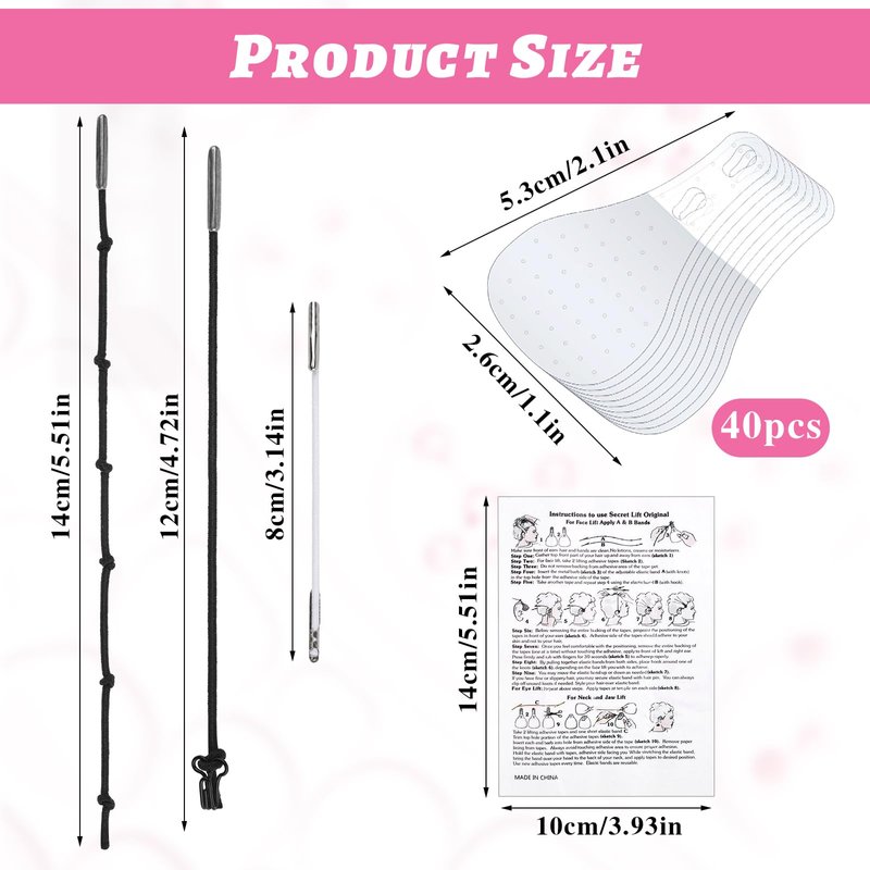 - What you will receive: You will receive 3 elastic bands and 40 face lift tapes, sufficient quantity to meet your daily replacement and use. These face lift tapes provide long-term use to keep your face, neck and eyes looking fresh and rejuvenated.