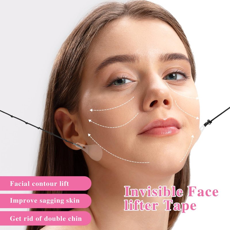 - Face lift tape: This face lift tape invisible with string can instantly lift sagging skin, make the chin and face slimmer, hide double chins and create a v-shaped face. Reshape facial contours, smooth wrinkles and give you an instant rejuvenated look.
