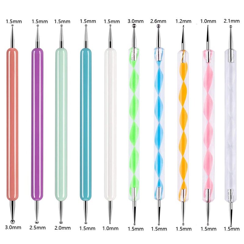 - All metal balls of the paint dotters are made of high-quality stainless steel, durable and sturdy. - Different colorful of plastic handle make the nail art dotting tool easy to be distinguished.