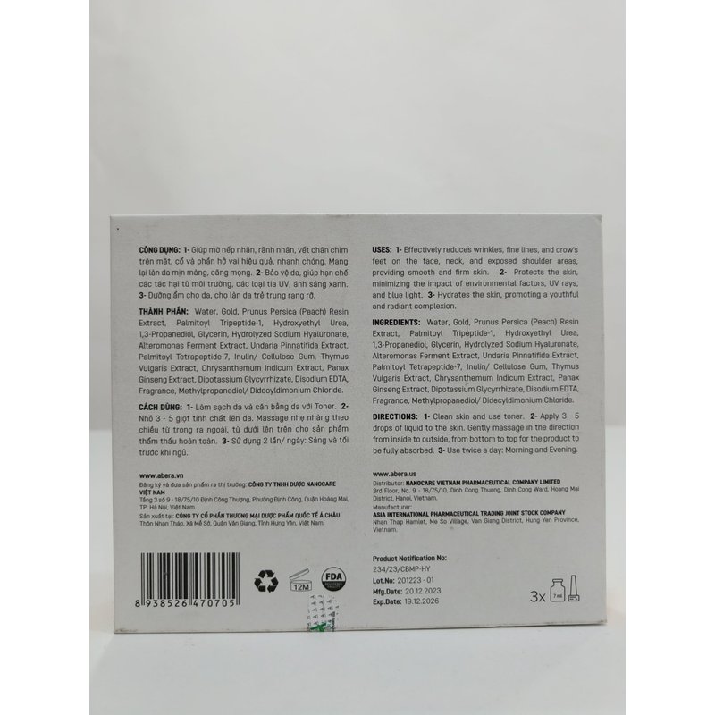 - 𝐄𝐚𝐬𝐲 𝐃𝐢𝐫𝐞𝐜𝐭𝐢𝐨𝐧𝐬: Achieve the best results by using Abera Gold Anti-Wrinkle Ampoule twice daily. Apply one ampoule in the morning and one in the evening to clean, dry skin. Gently massage the serum into your face and neck, allowing it to fully absorb. With regular use, you’ll enjoy smoother, more radiant skin that defies the signs of aging.