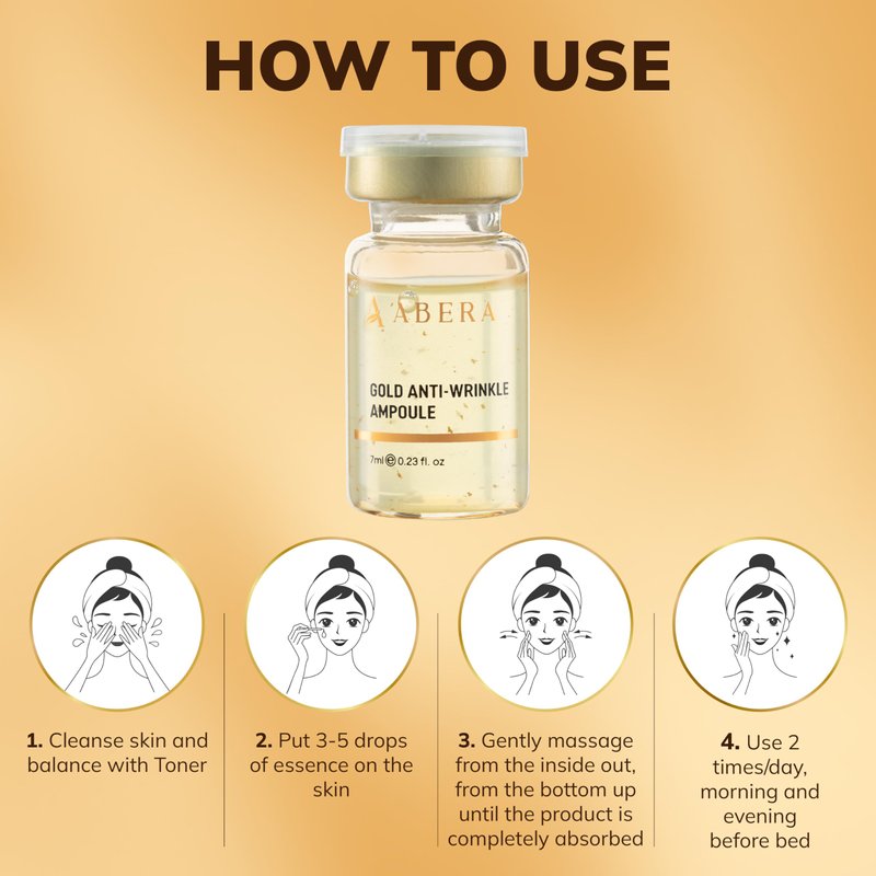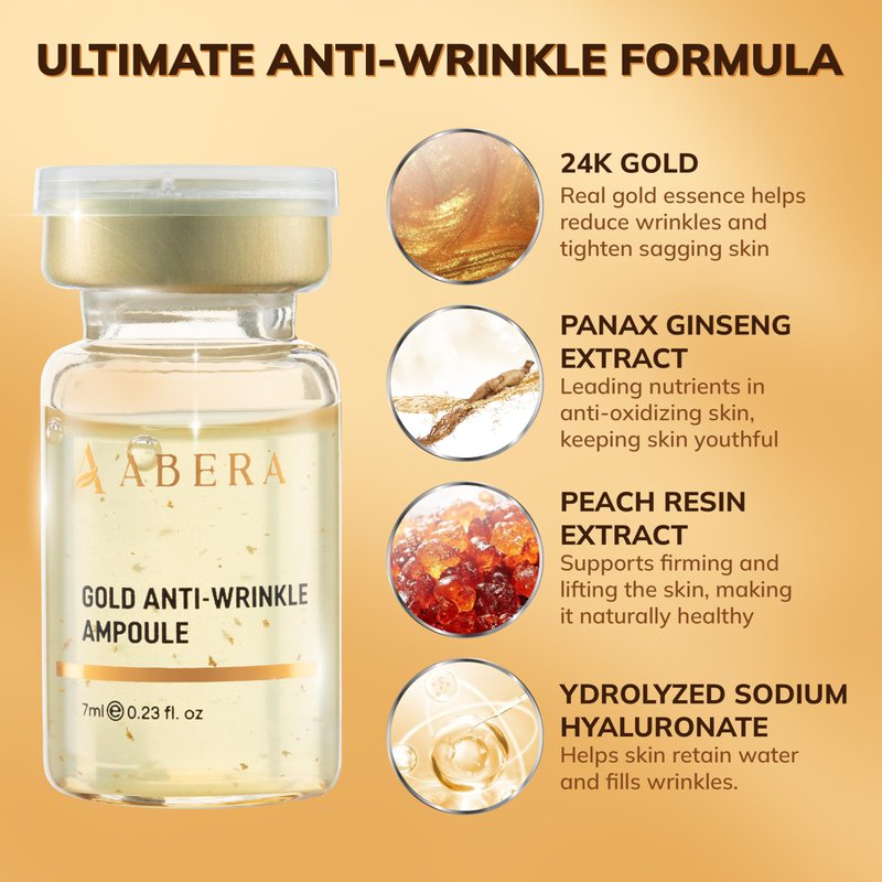 - Abera Gold Anti-Wrinkle Ampoule delivers remarkable anti-aging and anti-wrinkle results in just 4 weeks. Experience up to 5 times the effectiveness with our potent ampoule formula, designed to visibly reduce fine lines, wrinkles, and crow's feet.