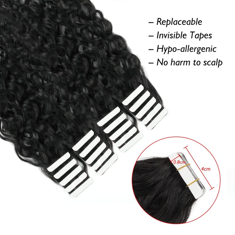 ABH AMAZINGBEAUTY HAIR Remi Seamless Curly Tape in Hair Extensions 4b Semi-permanent Double Sided Tape on Extensions Jet Black 18 Inch 50 Gram 20pcs