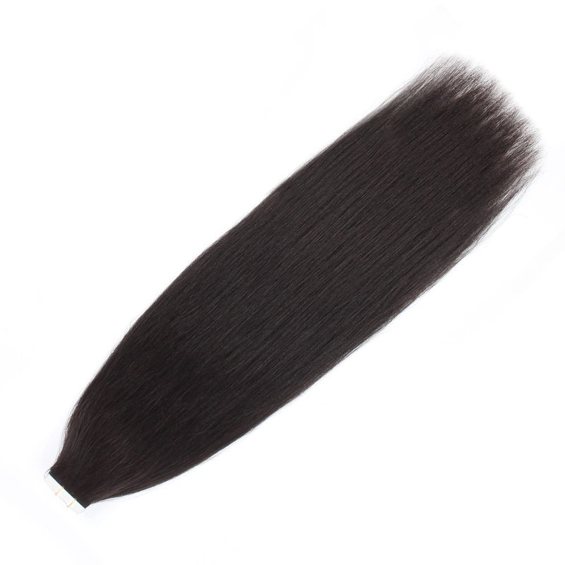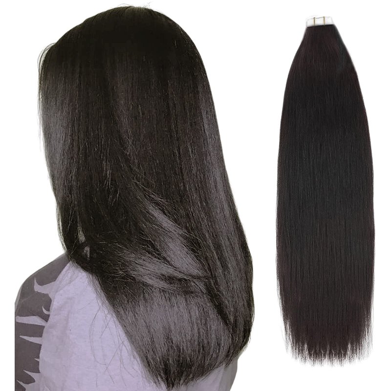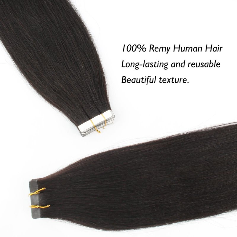 ABH AMAZINGBEAUTY HAIR Tape in Yaki Hair Extensions Human Hair Black Women Semi-permanent Tape Attached, Invisible 100% Remy Yaki Human Hair Natural Black 50 Gram 20pcs, 18 Inch