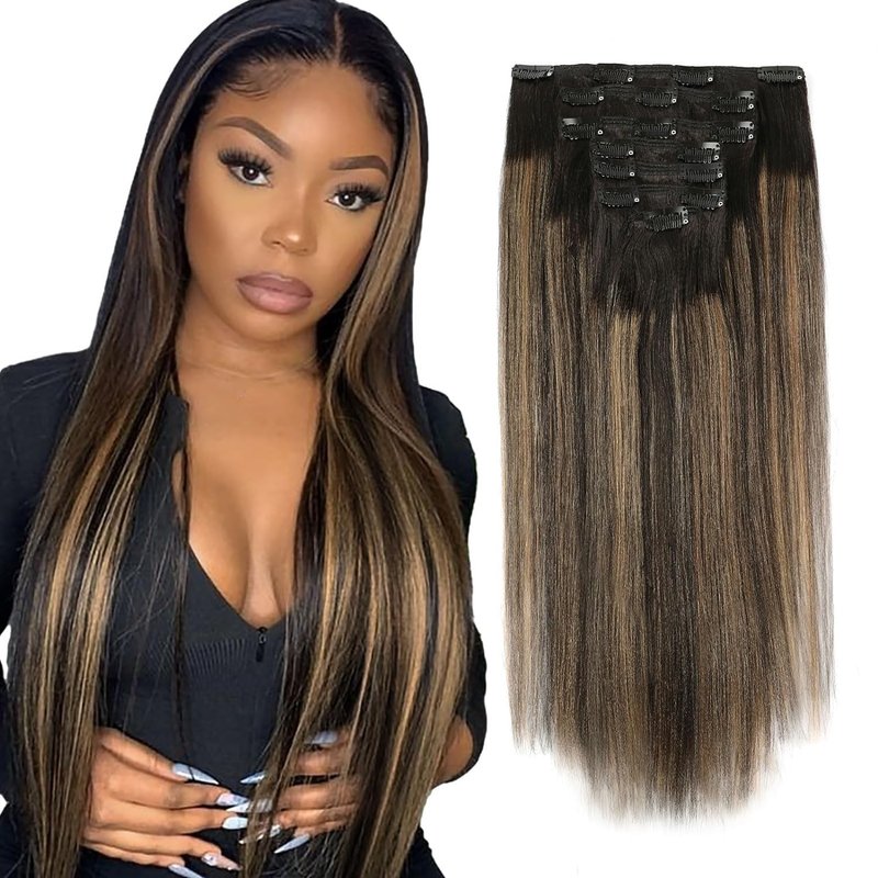 abh amazingbeauty hair yaki straight clip in hair extensions real human hair #1BT1BP27 Rooted Black Piano Natural Black #1B Fading into Caramel Blonde #27 Two Tone