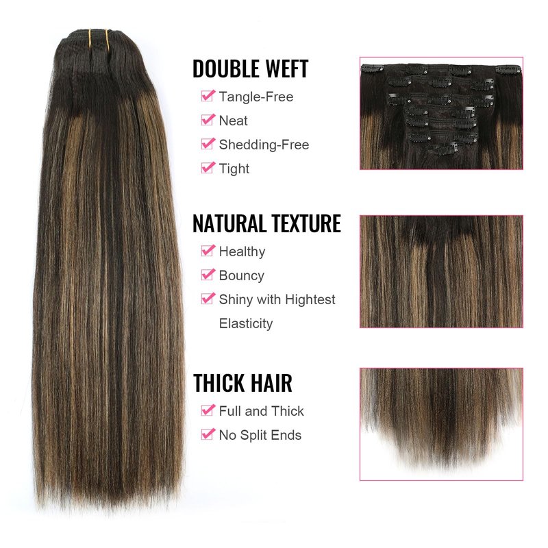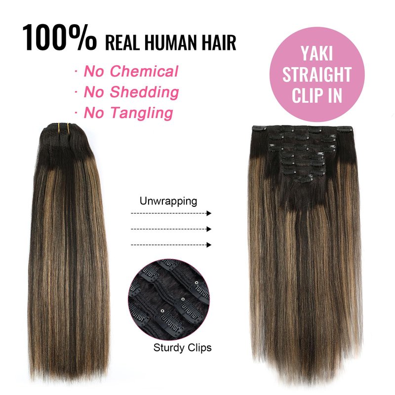 - 【Easiest to Use】The yaki straight clip in hair extensions real human hair can be put on and removed freely and quickly, so you can have longer and fuller hair in just a few minutes. Doesn't require frequent washing, it is as soft as natural hair, won't cause any damage to your natural hair, and can be removed without damaging your own hair.