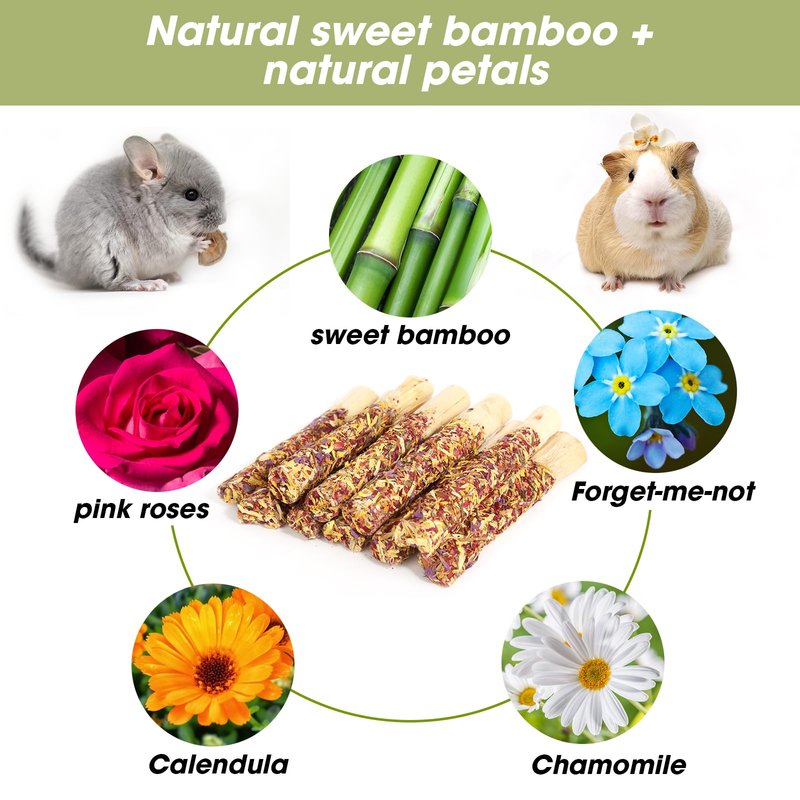 - 【All-Natural and Safe】Our chinchilla treats and chews are made from selected natural fresh bamboo and petals that have been sun-dried to retain nutrients,with no additives or artificial colors, ensuring your small pets can eat safely and happily
