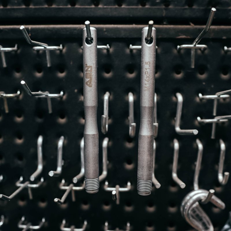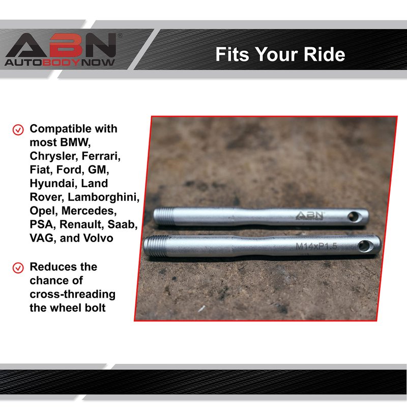 - SERVICE YOUR VEHICLE: The ABN M14 x P1.5 Tire Hanger Wheel Alignment Tool Kit allows you to line up the wheel with the correct hole during installation or removal of rims on the hub; The 2 pack wheel hanger alignment pins also help protect carbon-ceramic brake system rotors during installation