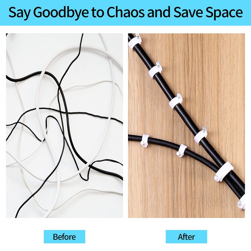 - [ Wide USE ] The cable management perfect for RG8X, RG58, RG59 or LMR 240 coax cable, RG6 digital video or audio coaxial cable, Ethernet Cat 5, Cat 6 network cable, speaker wire, phone wire, USB cable, Christmas light etc. Make your home more tidy and free up a lot of space. Cable tidy can also improve the safety of electricity use and protect the safety of family members, especially children.